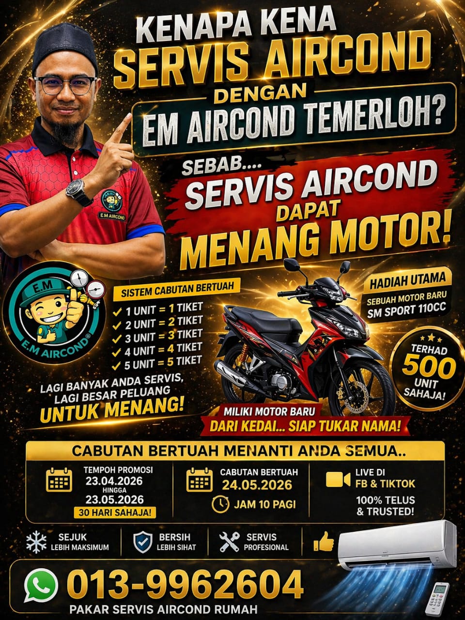 EM Aircond membantu rumah & premis anda kekal sejuk, selesa dan bebas masalah dengan servis cepat serta teknikal berpengalaman.
